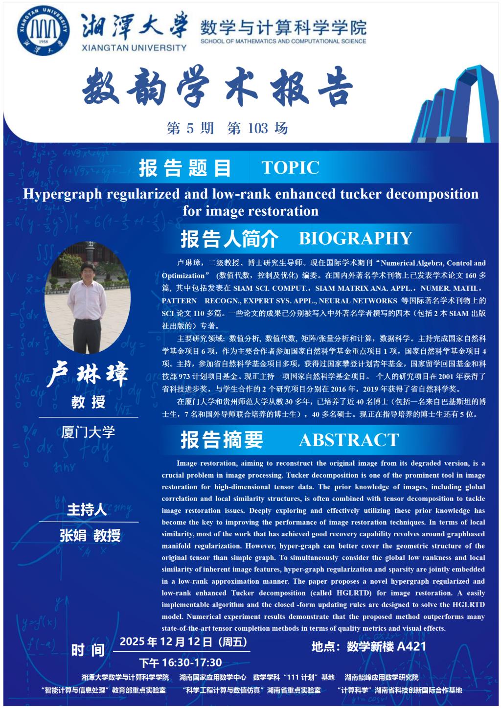 数韵学术报告-Hypergraph regularized and low-rank enhanced tucker decomposition for image restoration